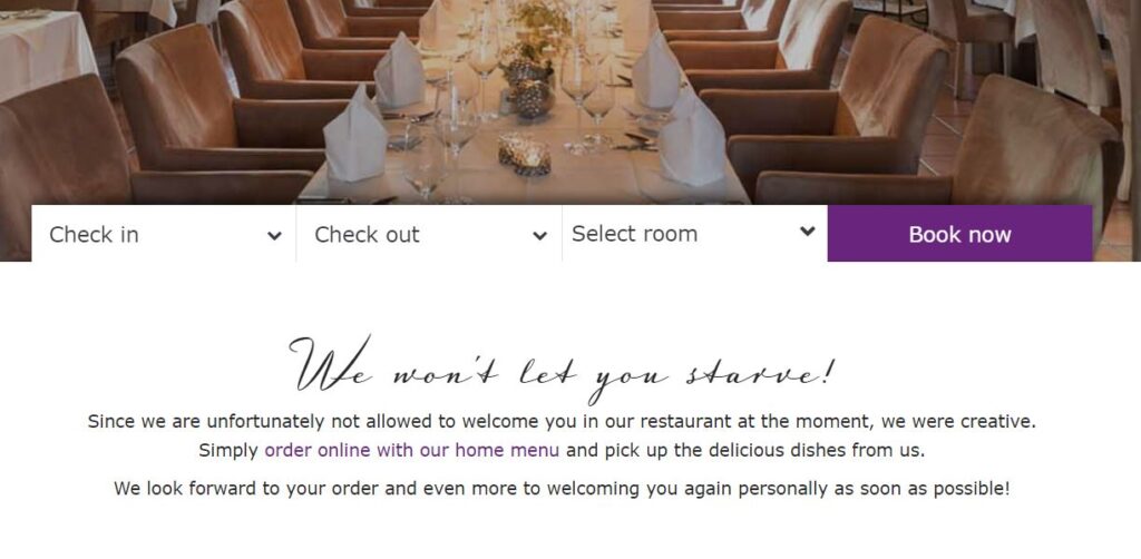Because of the Covid-19 crisis and the related closure of many hotels in Germany, we had to switch into crisis mode together in order to guide the hotel through this situation as well as possible. On the one hand, there was the idea of showing the hotel different ways to continue offering extra value to its guests. Therefore, the content was updated and adapted in order to provide the (potential) guests with all necessary information in an optimal way. In this context, we worked with different pop-ups and evaluated them. The hotel also established a pick-up meal offer and made it available on the website with our support.