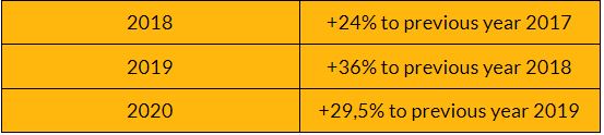 Compared to 2018, revenue from these campaigns increased by 52% in 2019. It is also particularly remarkable that even in the Corona year 2020 there is an increasing growth in revenue.